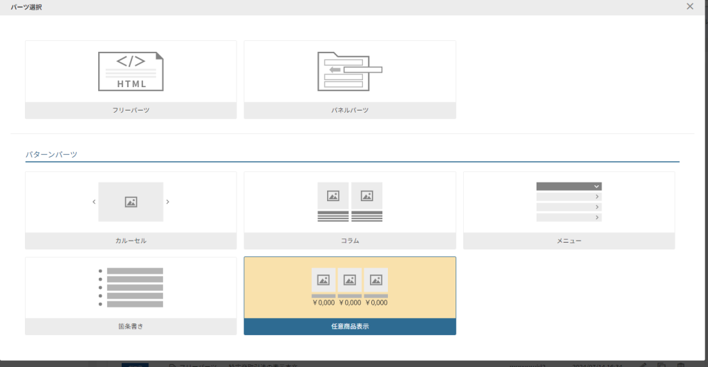 ・コマースクリエイターのパーツの種類