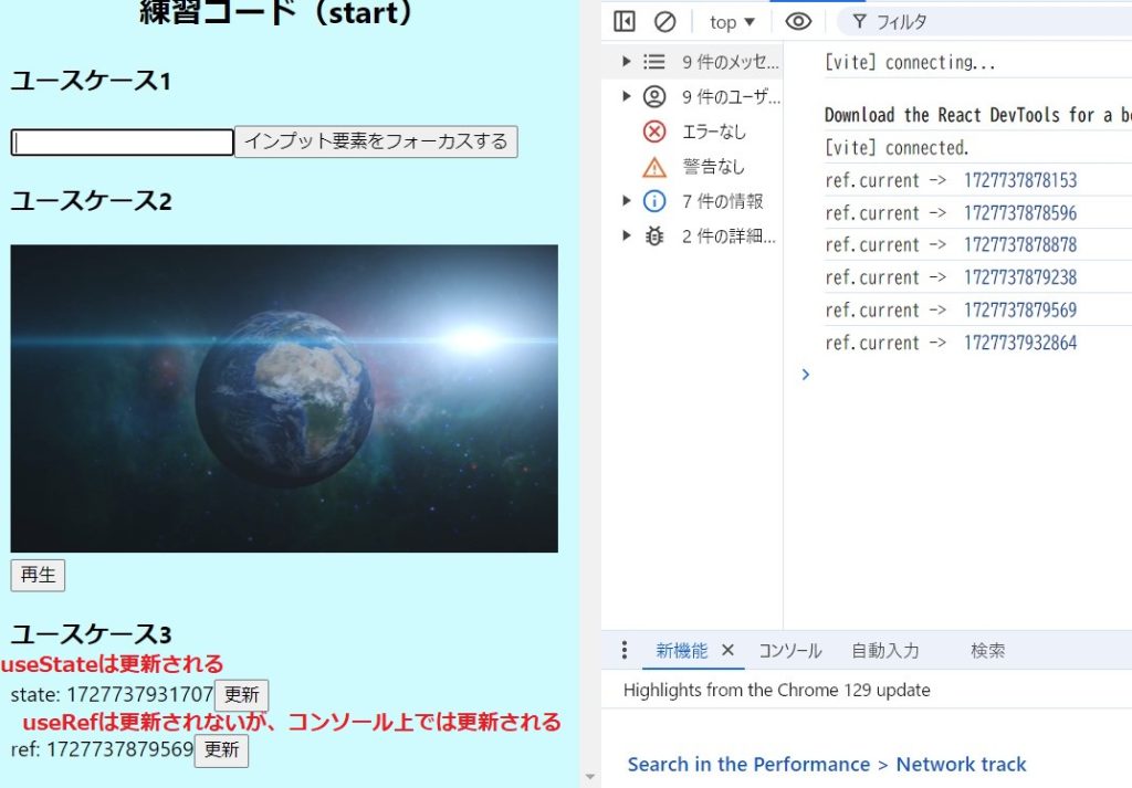 /* コンソールを見るとブラウザの表示と、ref.currentの中身が異なることを確認できます */
