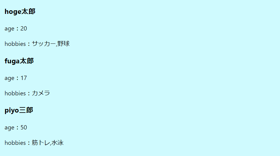 "hobbies": ["サッカー", "野球"],