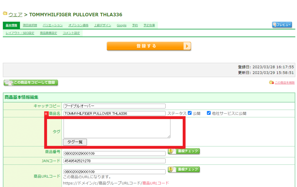 </div>商品タグ検索とは、商品登録の際に記述されているタグを検索する機能です。